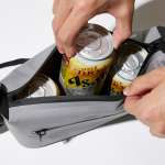 メインコンパートメントには350ml缶が3本収納可能。さらにフロントには小物が収納出来るジッパーポケットも備えているので、フェスなどでも活躍してくれるに違いありません。