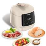 圧力、蒸す、煮る、炒める、低温、ベイクなど8種の調理モードを備える電気圧力鍋。圧力調理で時短になるだけでなく、食材の栄養もキープ。設定不要のレシピモード4種と炊飯モード4種を合わせて計16役で使える。調理容量は2L。