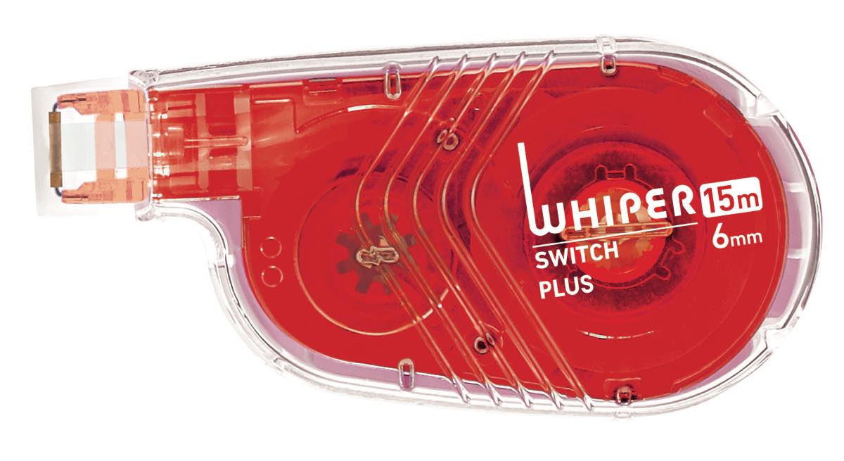 「ホワイパー スイッチ」はコンパクトで握りやすい横引きタイプ。利き手に関係なく使えるユニバーサル仕様です。文字の隠蔽力は従来の修正テープと同等ながら、白色層のさらなる薄さを実現した“薄さらテープ”を採用。紙面との段差が少なくなったことにより、消した部分の再筆記時にテープの削れや剥がれが起きにくくなりました。