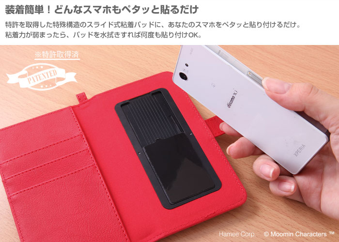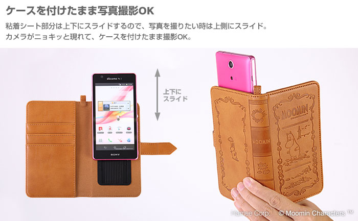 そして、この粘着シート自体が上下にスライドすることにより、ケースを装着したままでも写真撮影が可能に。これはなかなかのアイデア! 可愛くて機能的なスマホケースをお探しならこれに決まり!ですね。
