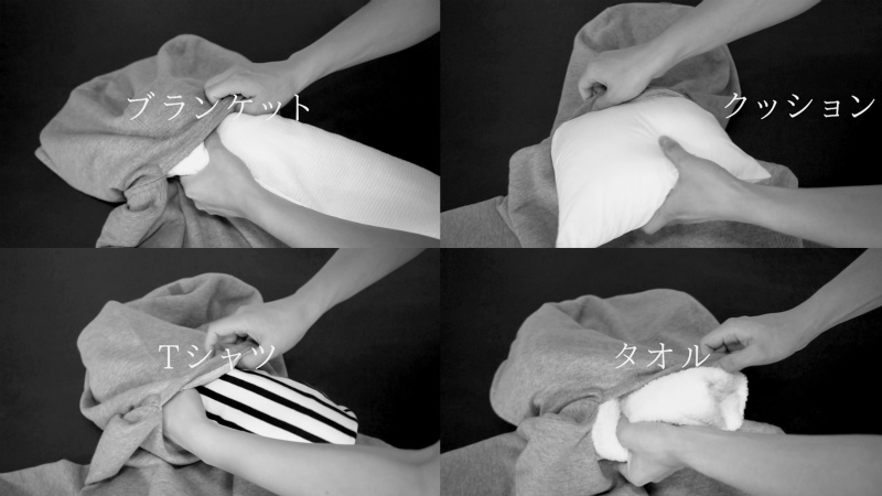機内で配られるクッションやブランケット、手持ちのバスタオルやTシャツなど、入れるものによって自分好みの寝心地を作りだすことができるというわけです。