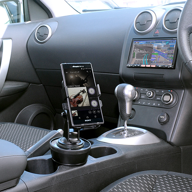 これがあれば、据え置き型や収納型のドリンクホルダーにスマホを設置できる。そもそもカーナビはあって、スマホはサブとして使ったり、音楽を楽しむことがメイン、という人にもぴったりだ。