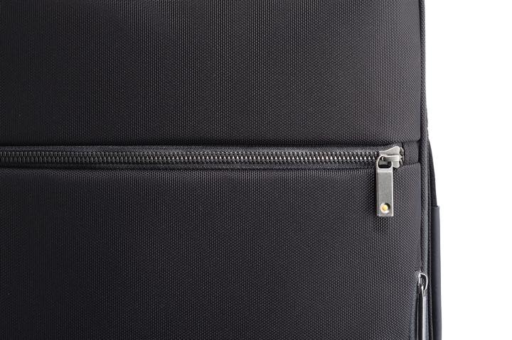 また、リュック上部にはスマホやメガネなどが収納できるパイル生地のポケットを設け、背面にキャリーケースのバーに設置できるセットアップベルトも装備。まさに、忙しく飛び回るビジネスパーソンのためにつくられたリュックです。