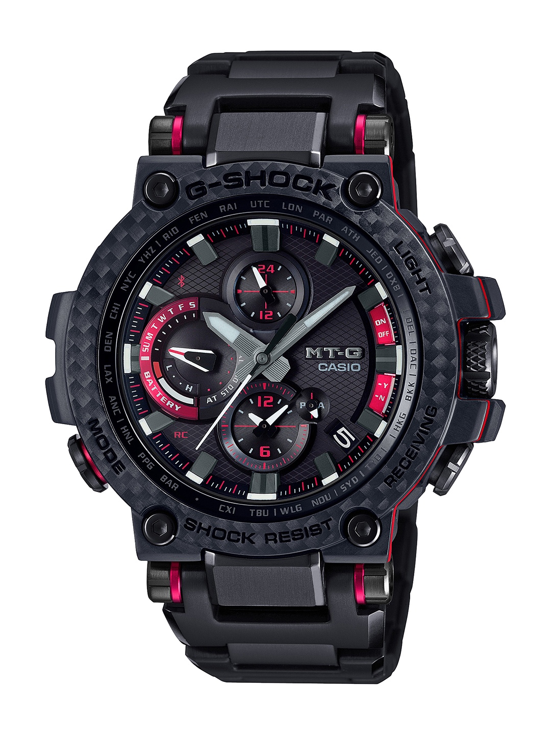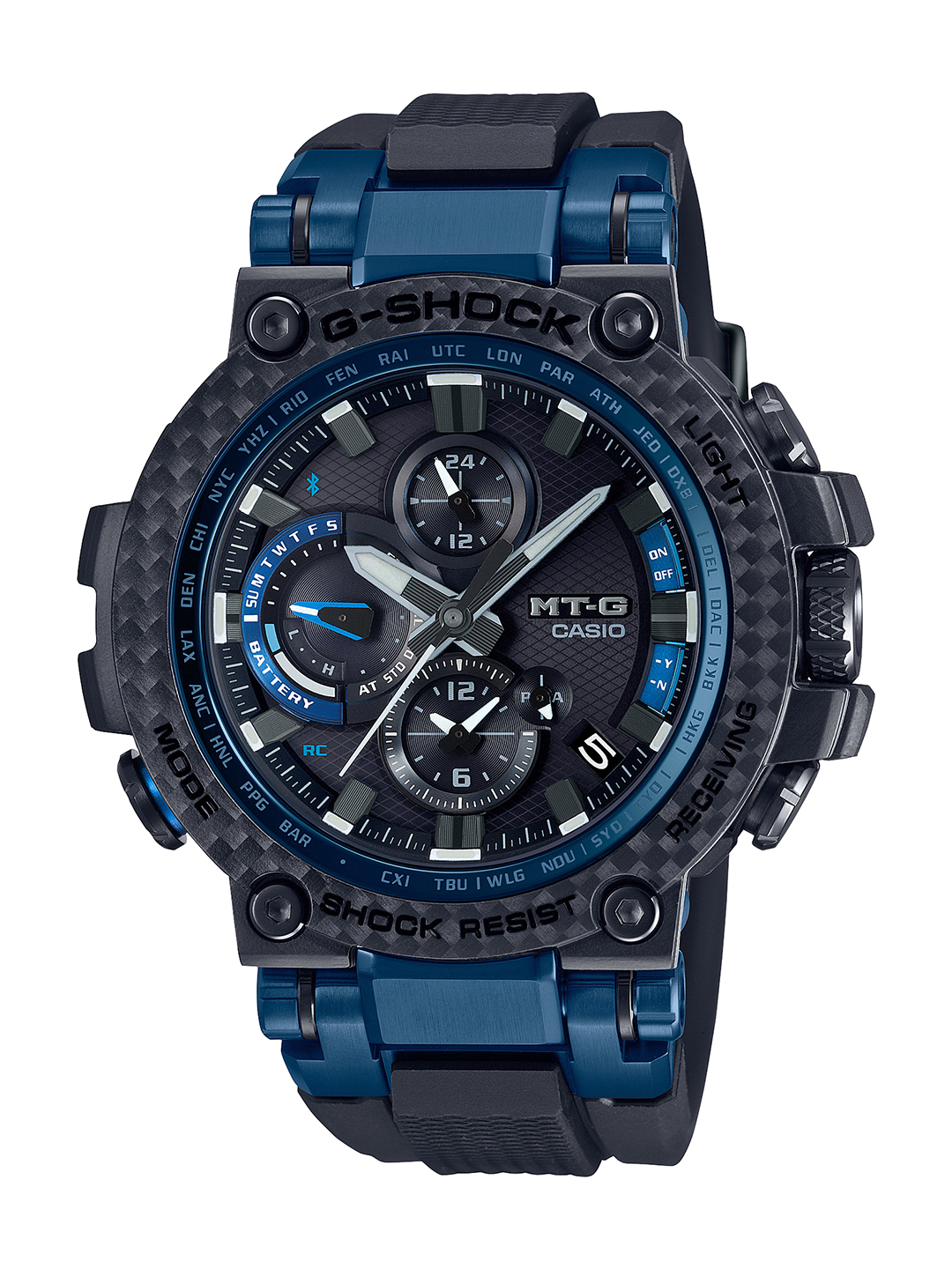 10月5日から発売されるのは「MTG-B1000XBD」(13万5000円/税別)と「MTG-B1000XB」(12万円/税別)の2モデル。電波ソーラーなどの高い機能性と、腕になじむミドルサイズを両立した「MTG-B1000」をベースに、MT-Gシリーズとして初めてカーボン素材をベゼルに採用しています。