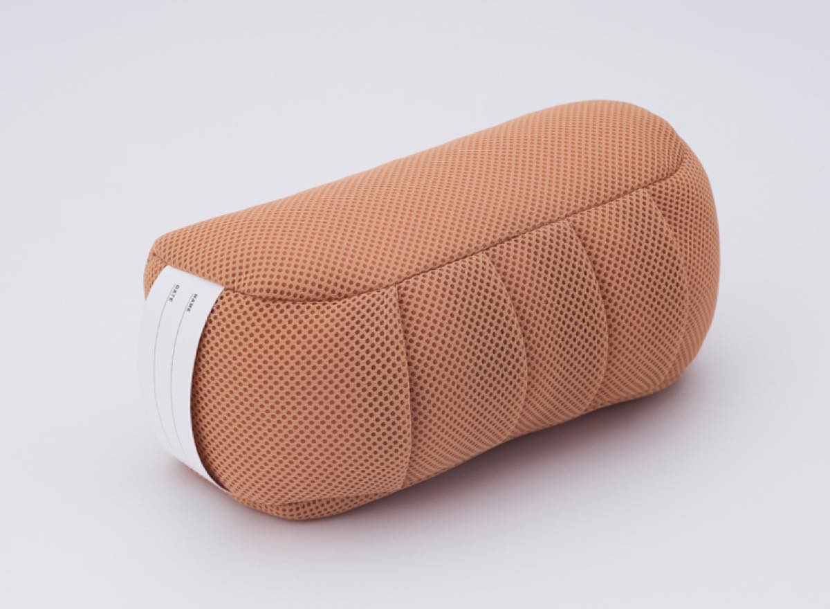 もちろん、クッションは耐熱仕様なので安心。また、水風呂・外気浴時などの際にネックレストとしても使用できます。寸法はW260×H125×D125mm。カバー素材はポリエステルで、中材には水はけの良いポリプロピレンパイプを使用しているため、乾燥しやすくなっています。丸洗い後は軽く水を切って自然乾燥でOK。繰り返し使用することでのヘタリは、中材を追加することで元に戻ります。