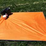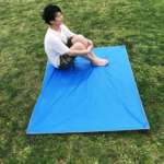「雨除け日よけ3WAYレジャーシートmottekou」は、130cm×160cmのシート。大きすぎず小さすぎず、ちょうどいいサイズを追求し、大人3人が横並び座り出来るサイズに行き着いたのだそうです。