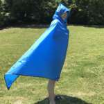 さらに、隅が二重になっていることにもご注目。この部分を頭にかぶることでレインコートとして使うこともでき、急な雨にも対応できるんです。この1枚で3役のユニークなデザインは、特許取得済とのこと。