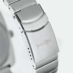 生まれ変わって登場した「アルスタ ノートスカフ スーパーオートマティック1970 復刻モデル」は、シリアルナンバーとジョーズをオマージュしたケースバックや、舷窓をイメージしたブレスレットとバックルなど、ジョーズファンにはたまらないこだわりが随所に散りばめられています。今回のモデルではステンレスベルトとラバーベルトの2種類が用意されています(どちらも価格は11万5500円)。