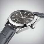 今回登場の日本限定モデルではサンレイ仕上げを施したグレーのカラーダイヤルを採用、中央から十字に伸びたクロスラインがデザインのアクセントに。ダイアルと色を揃えたグレーのレザーストラップは、手元をぐっとシックな印象に、型押しレザーの立体感が、洗練された大人の雰囲気を漂わせます。また、付属するステンレススチールブレスレットとも相性はピッタリで、スーツスタイルはもちろん、プライベートにおいてもファッションの良きパートナーとして腕元をスタイリッシュに演出します。