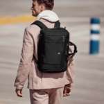 収納部以外も細部まで考えられた設計に。バックパックタイプに備えているファスナー式バックポケットは、スーツケースのハンドルに装着できるスリーブとしても使用可能です。