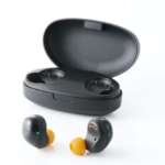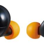 完全ワイヤレス型なので、使い勝手は一般的な耳せんとほぼ同じ。耳の中に入る部分のイヤーピースはオレンジ、外から見える部分はブラックで、使いやすいカラーなのも魅力です。