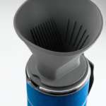 シリコーン製のドリッパーは、カップに収納でき、繰り返し使える布製のフィルターも付属されています。