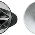 「V60 1回抽出ドリッパーMUGEN」を上から見ると、内側に星形の細い溝があることがわかります。ここにペーパーフィルターをセットしてお湯を注ぐと、ペーパーがドリッパーにぴたりと貼り付き、内側の星形の溝をつたってゆっくりとコーヒーが抽出される構造になっています。この構造が、蒸らしなしを実現しているんです。