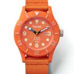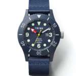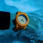 時計ケースとストラップは、スイスのTide Ocean Material社が製造した100%リサイクルの海洋プラスチックを使用し、ディープブルー、ニモ、オクトパスの3カラーで展開。潜水艦をインスパイアしてデザインされたその姿は、当然ながらプラごみ由来のマテリアルであることを全く感じさせません。
