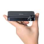 注目すべきはなんといってもその大きさで、本体サイズはW107.8×D80.4×H17.2mmとスマホよりもコンパクト。大きなプロジェクターのようにキャスターでゴロゴロ運ぶ必要がなく、薄いのでポケットにもスッポリ。手軽に持ち運べ、セッティングも簡単です。