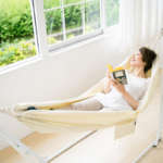 それならいっそ、普段の生活の中でも使いやすいデザインにしちゃえばいいんじゃない?ということで生まれたのが、この「mottole ハンモック MTL-Z016」。スタンドにはアウトドアグッズではちょっと珍しいホワイトカラーを採用。またハンモック本体もナチュラルなイメージのアイボリーカラーをチョイスするなど、リビングにもなじみやすいすっきりとしたルックスが魅力です。