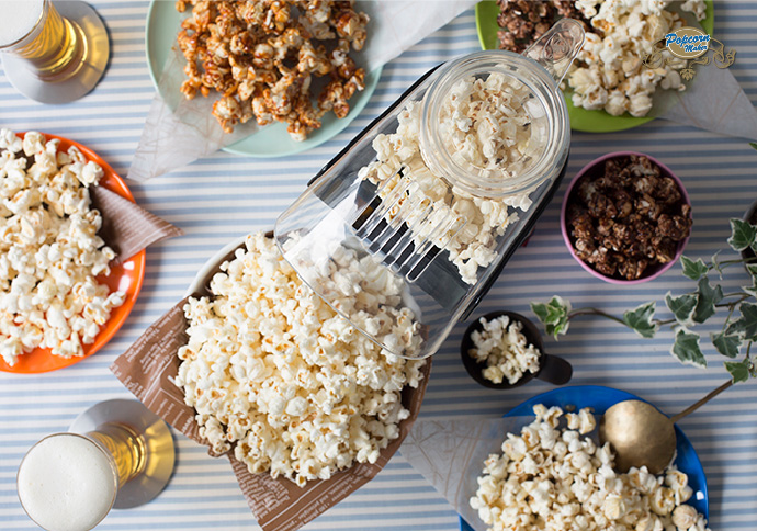 使い方は簡単。スーパーなどで売っている市販のポップコーン豆を入れて、スイッチを押すだけ。約3分でポップコーンが面白いほどポンポンと弾けて飛び出してきます。できたてに好きなフレーバーで味付けをすれば完成。いろんな味を楽しめるのが、ホームメイドの魅力。パーティーの主役として大活躍してくれるアイテムです。