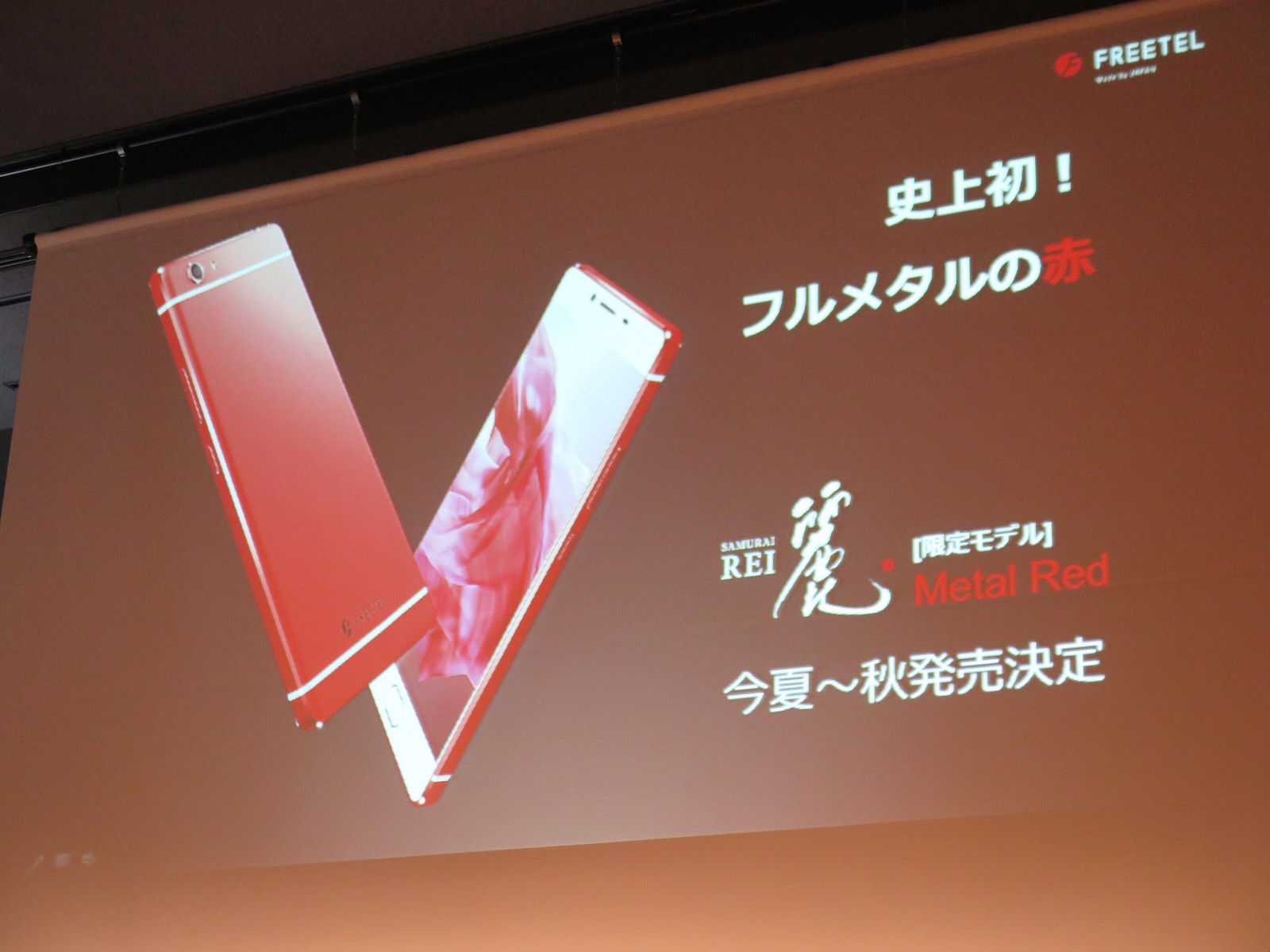 さらに、5月27日から発売されているAndroidスマホ「REI(麗)」(2万9900円)の新色モデルも発表されました。7月9日までに順次発売される5色に加えて、今夏〜秋に「Metal Red」モデルが限定発売されます。フルメタルで美しい赤を表現するのは難しいらしく、「ようやく納得の色を出せた」といのこと。実機はお披露目されませんでしたが、REIの購入を検討している人は、この色の登場を待ってもいいかもしれません。
