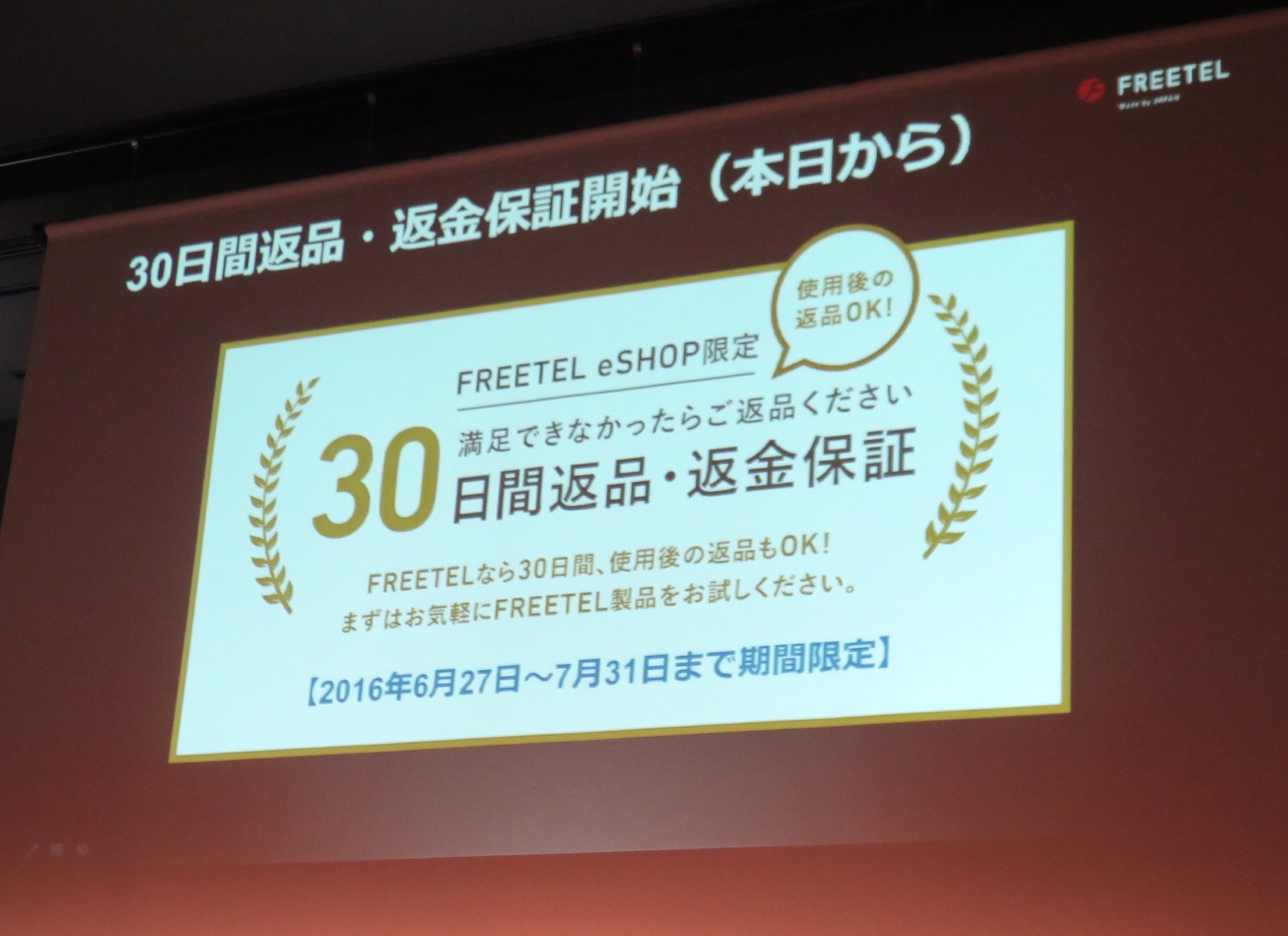 また、6月27日〜7月31日には、直営のオンラインストア「FREETEL eSHOP」でスマホを購入した場合、30日以内は使用後でも返品できる「30日間返品保証キャンペーン」を実施。FREETELのスマホは、全国の多くの量販店で実機を試すことができますが、近くに販売店がない人や、お店に行く時間がない人には、うれしい制度といえそうです。