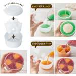 サイズは、W190×D200×H360mm、1.635㎏。スリムなサイズとToffyならではのレトロな雰囲気は、キッチンカウンターにあえて出しておきたくなる秀逸なデザイン。製氷カップ×2 個、製氷パーツ(ハーフ、ミックス)×各1 個、フルーツ用リングが付属しています。