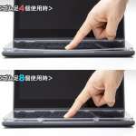 キーボード面のタッチパッドやアウトカメラなどを避けてゴム足を取り付けることで、本体をしっかりと支えつつ、手や物を乗せてもたわむことなくキーボード面をカバーします。