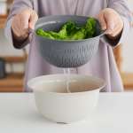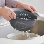 サイズは、ザルがW23.5×D23.5×H11cm、ボウルがW23.5×D23.5×H10.8cm。カラーはどんなキッチンにもなじみやすいグレーです。