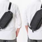 バックパックとは違い、背負ったままでバッグをクルッと前に持ってくれば、そのまま荷物の出し入れができるのがスリングバッグならではです。
