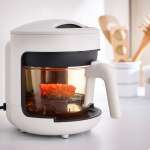 本体は透明のガラスポットになっているので、ちょうど良い焼き加減を確認できます。加熱が速いカーボンヒーターを採用しているため、予熱は不要。消費電力は650Wの省エネ仕様。気になる電気代を抑えられ、他の調理家電も併用して使えます。