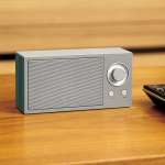プラスチック素材をラバーコーティングでマット調に仕上げたボディは、どんな部屋にもマッチ。クルッとツマミを回して電源と音量を調整するダイヤル式は手元で操作しやすくなっています。