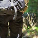 ペインターパンツのテイストを生かしつつ、より機能的にするために配置された両サイドの三連ギアループが最大の特徴。好みの高さでギアを吊り下げられて、さらに左右アシンメトリー形状のサイドポケットを配置するなど、アウトドアでの着用を考慮に入れた設計となっています。