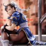 緻密な造形で表現されたしなやかな筋肉は、春麗の持つ強さと美しさを現実世界で見事に立体化しています。春麗の座る傍らには、ドリンクボトルが置かれています。闘いから一時離れた戦士の休日といった趣で、より世界観が広がりますね。