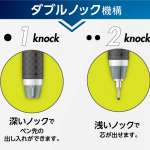ダブルノック式で、深いノックでペン先を収納、浅いノックで芯を出せるガジェット感も楽しいですね。グリップも握りやすい仕様で、勉強も仕事もはかどります!