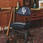 「GP LOGO STADIUM CHAIR」(4万9500円)は、MLBやNBA、NFLのロッカールームや観客席で公式に使われているハイスペックスタジアムチェアをGP仕様にしたもの。人間工学に基づいて設計された厚みがあるシートは、ネイビーをベースにホワイトでブランドのロゴをデザインしています。頑丈なフレーム構造により200kgまでOKの高耐重量で、安定性もバツグン。折りたたみ仕様で、アウトドアなどにも持ち運べます。