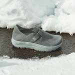 「ponga」ではオリジナルのリカバリーソールをベースに、アッパー素材にクラレ社が開発した⼈⼯⽪⾰“クラレーノ”を採用。本⾰よりも耐久性・耐⽔性に優れた素材で、スエードの質感が見た目にも暖かさをプラスします。