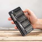 機能1つ目はマイクロドライバー。細長いスリムな形状で狭いスペースでも利用できるので、小さなネジを止める際に便利です。六角軸の4mm(5/32インチ)ビットであれば、他社製のビットでも付け替えできます。独自設計のロック機構により、ドライバーが安定しやすく、正確に力をネジに伝えることができます。なお、メタルケース付きのセットであればドライバービットが24個付いてきて管理も簡単です。