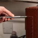 専用ケースは別途メタルケースとレザーケースの2種類が用意されています。メタルケースは磁石式なので、本体やアタッチメント、ビットなどをケースに吸着させて管理できるだけでなく、ケース自体を金属製の壁に取り付けての作業も可能です。