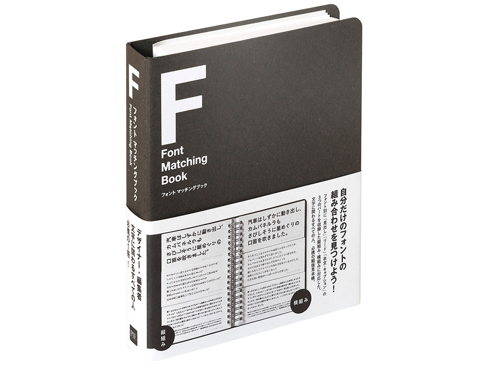 そんな人にオススメなのが、組版見本帳「フォント マッチングブック」。「見出し」「リード」「本文・キャプション」に分かれた3つのパートをそれぞれ自由にめくってマッチングできる、実用的かつ、フォント好きなら眺めているだけでも楽しいアイテムです。