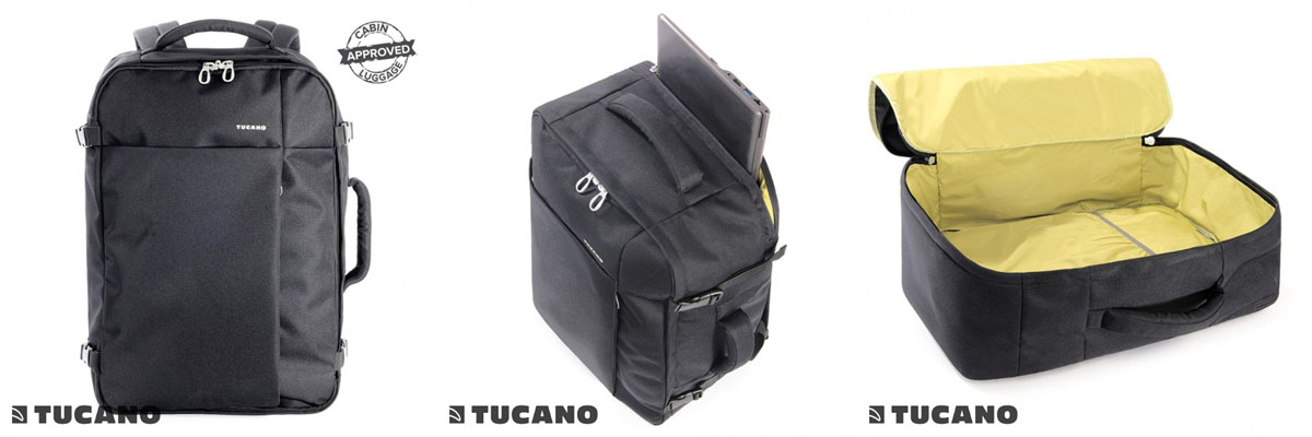 ▲「TUCANO TUGO LARGE(ツカーノ ツゴ ラージ) リュックサック/バックパック」(1万9440円)カラー:ブルー、ブラック、カーキ サイズ:35×55×20cm 最大容量38リットルの大型バックパック。機内持ち込みサイズ。ファスナーは南京錠を付けられるようになっている。また衝撃吸収パッド入りで、耐水素材を使用。ノートPCは17.3インチまで収納可能。