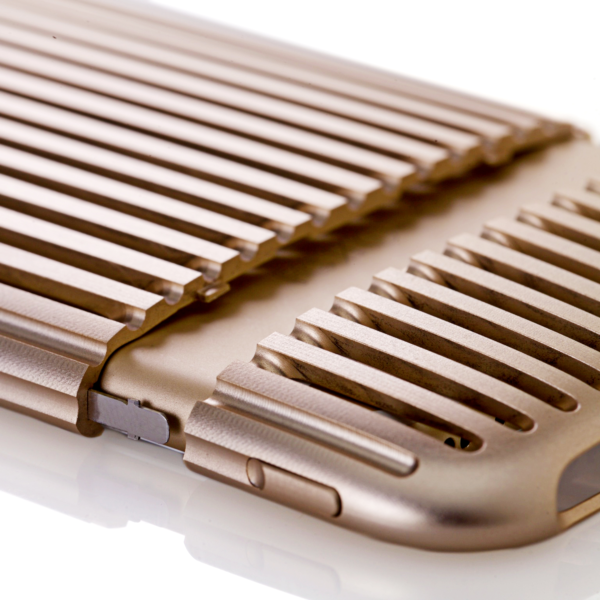 なかでも最高級モデルの「The Slit」は、日本の職人技術を駆使した“究極のiPhoneケース”と呼べるもの。和の建築のようなスリットの美しさも筆舌に尽くし難いが、注目すべきはその構造。金属製のケースは、ネジなどを使って装着するのが一般的だが、多くの職人らの研究と幾度もの試作の末、上下に分かれたケースを合わせるだけで完了する特殊な構造「batto」を開発。