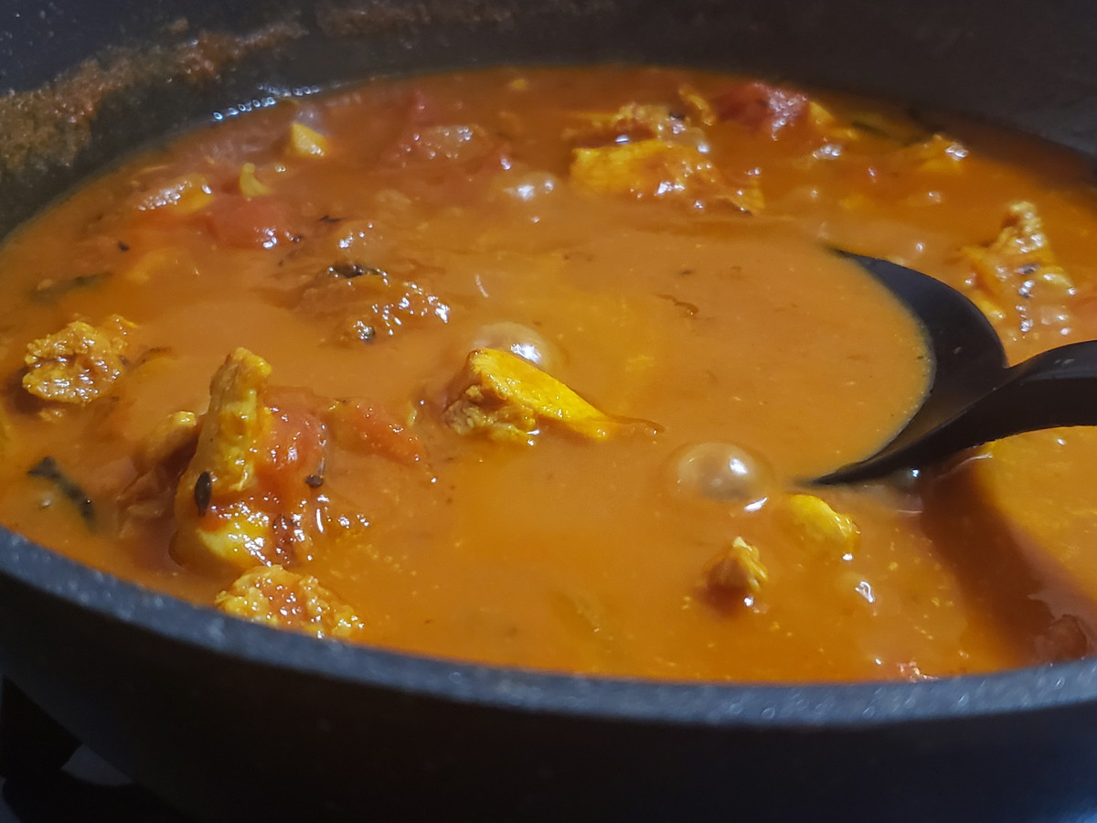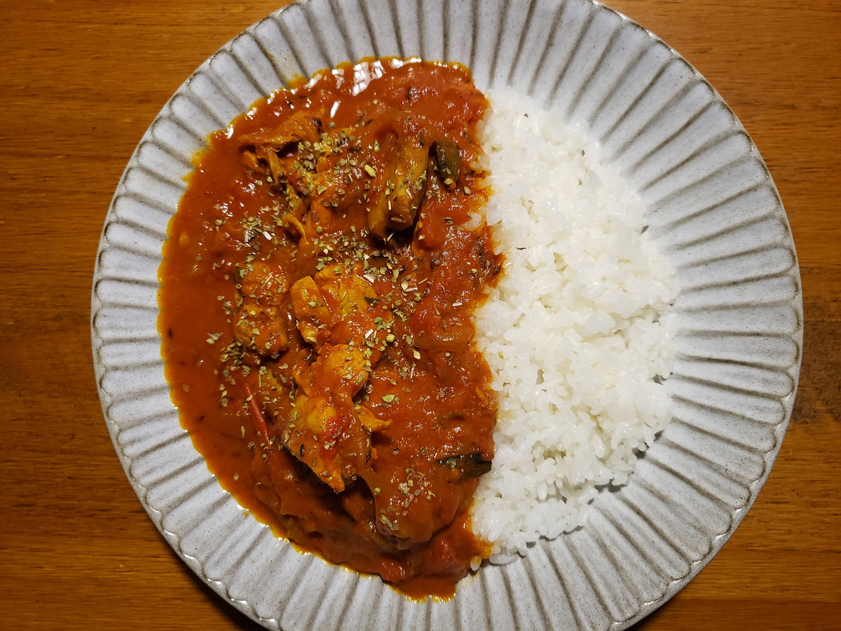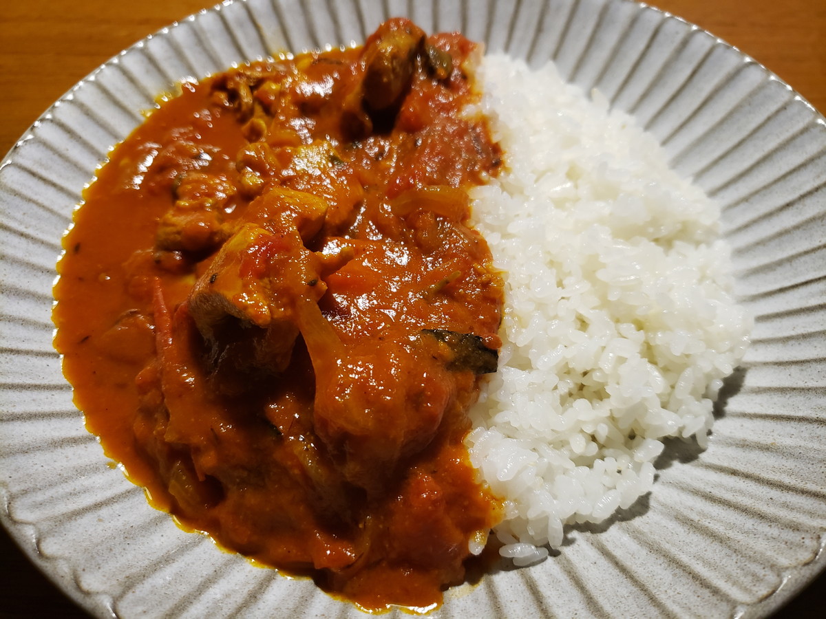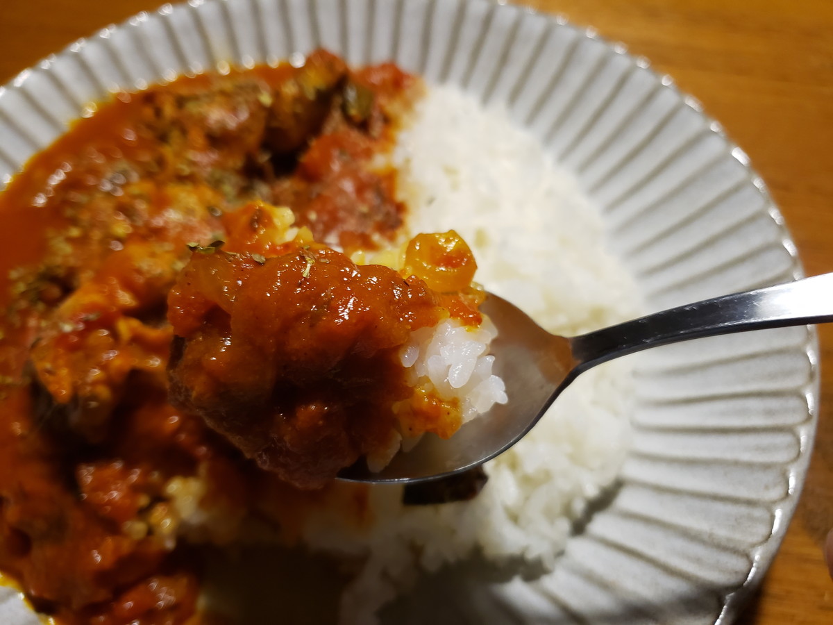 よーし、いただきます! う、う、美味い! しっかりスパイス感がありつつ、日本のカレーのように小麦粉を使っていないので、もったり感がない。トマトの味が強そうに見えますが、スパイスと調和してカレーらしくなっています。