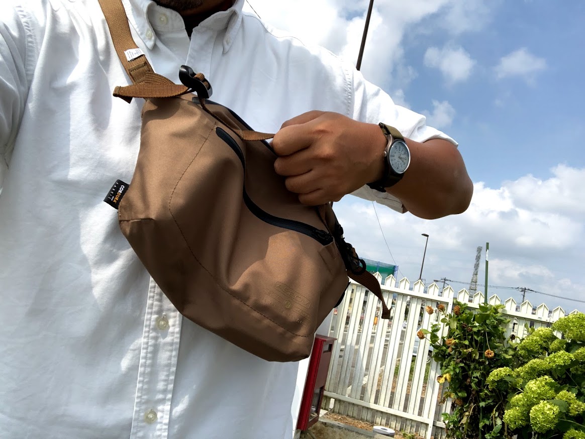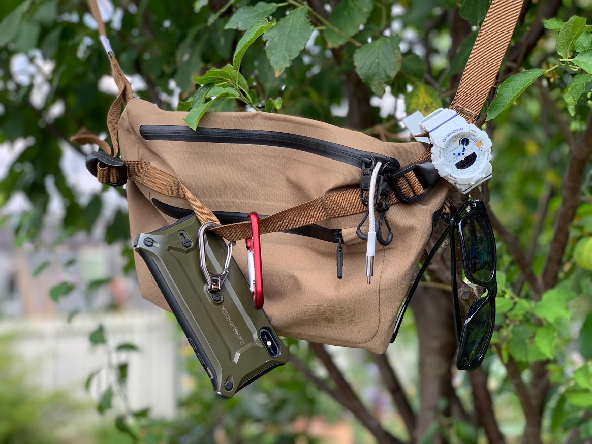 そのアイテムが、ボディバッグにもショルダーバッグにもなるAS2OV(アッソブ)の「WATER PROOF CORDURA 305D FANNY PACK」(1万1800円)です。一見、なんの変哲もない平凡なバッグに見えるんですが、なかなか細かい工夫が施されていて、すごく便利。カラーはブラックとカーキがあり、アウトドアでも似合うよう後者を選びました。