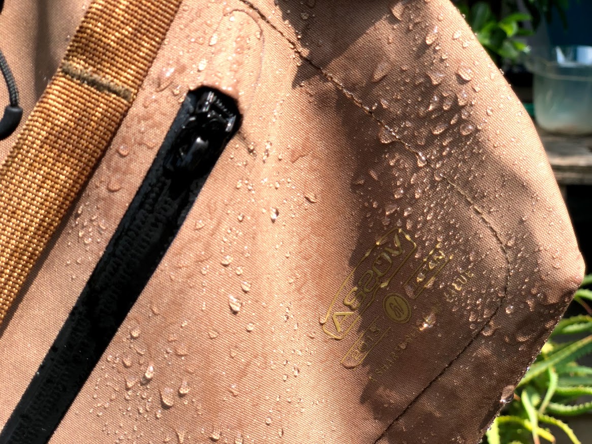 まずは基本のファブリックに関して。本体素材には縦・横に特殊ポリエステル糸を使用した 「CORDURA305d fabric」を使用しており、摩擦・引き裂き・すり切れ等に対する強度を 備えています。つまりキャンプやフェスといったアウトドアで多少荒く使っても大丈夫ということ。