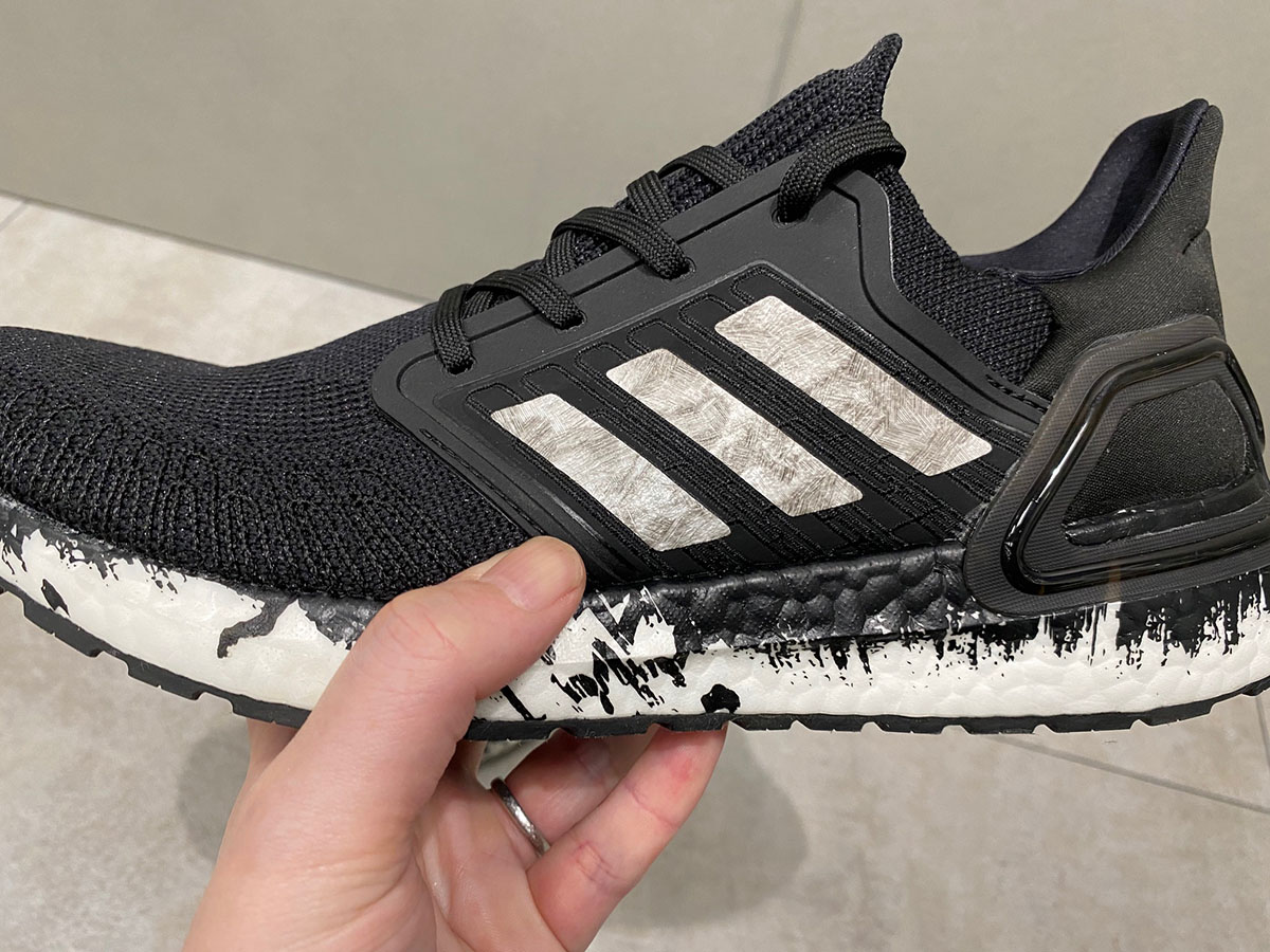 ソールにはお馴染みのブーストミッドソールを搭載し、クッション性と反発性を両立しています。まるでアッパーから垂れ落ちたようなペイントが、どことなくストリートフレーバーも感じさせます。