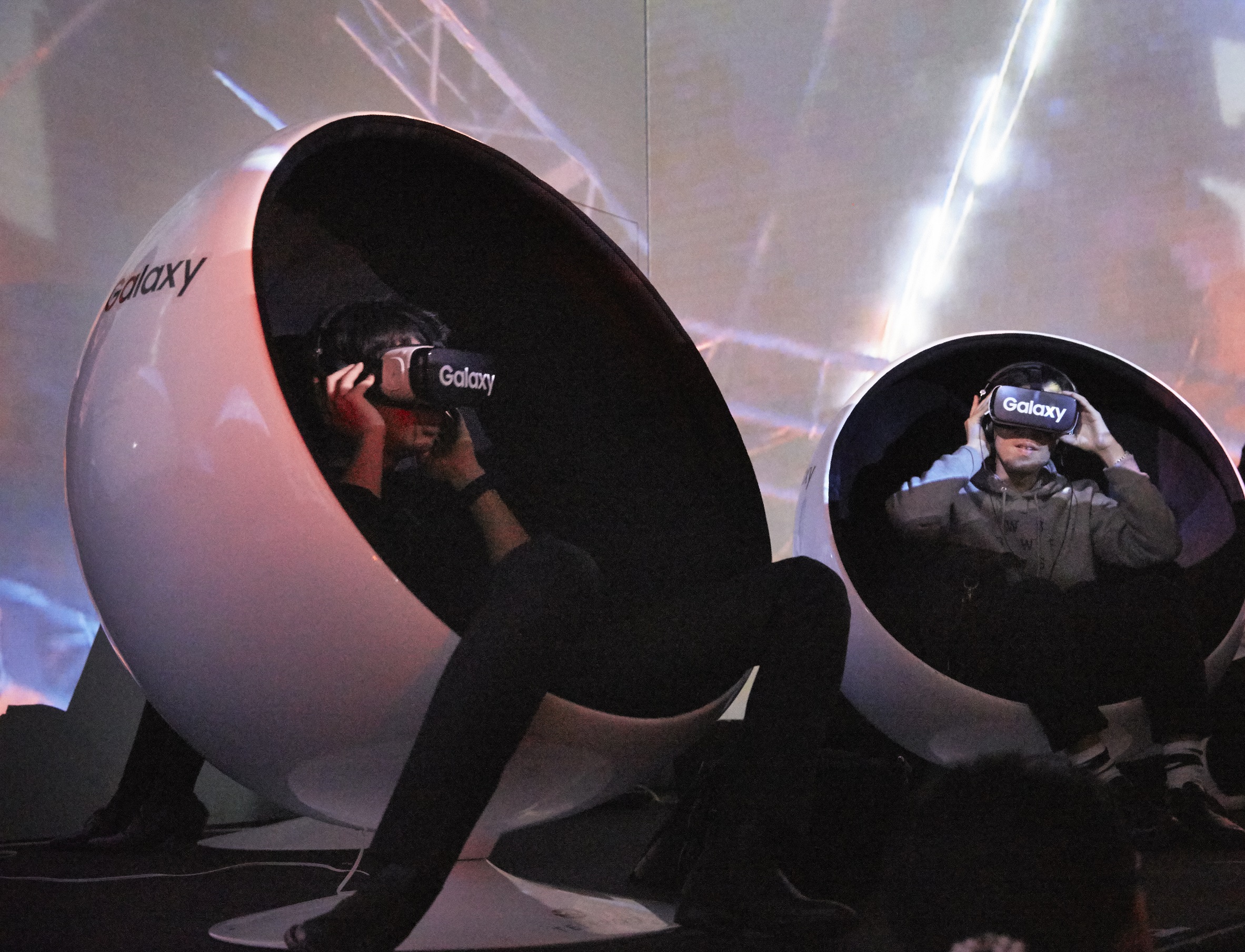 渋谷PARCOのアンダーワールドのライブでも使用されたGearVRは、昨年末に発売されたばかりの、コンシューマー向けのゴーグル型ヘッドマウントディスプレイ。VR機器として最良モデルのひとつ。これを利用するためにGalaxyに機種変更するユーザーも少なくない。