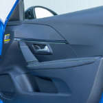 外観におけるe-208と208との相違点は少なく、よほどクルマ好きでなければ違いをいい当てられないだろう。e-208専用アイテムとしては、ツートーンに塗り分けられ、見る角度によって色が変化するライオンのエンブレムや、ボディ同色のアクセントが入るフロントグリル、専用デザインのホイール、リアピラーに付く“e”のエンブレムが挙げられるが、208との違いといえばその程度だ。