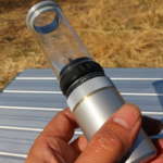開発サンプルなので文字がシールだったりしますが、これが最終モデル。本体はφ3.8×H15.6cm、重量222g。