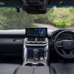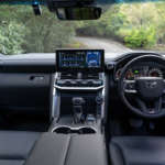 ドアを開け、フロアと着座位置が高い本格オフローダーらしいドライバーズシートに乗り込むと、目の前に広がるインパネの造形も、ランクルならではのこだわりをしっかり継承していることが伝わってくる。悪路などで車体の傾きを把握しやすい水平基調のダッシュボードと、柱のように垂直に立つ太いセンタークラスターとが交わるレイアウトを、200シリーズから受け継いでいる。
