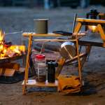 焚き火の周りにチェアを置き、ゆらめく炎を眺めて過ごす至福の時間を快適にしてくれる。いわゆるサイドテーブルのような存在は、あると本当にラクですよ。