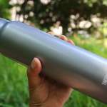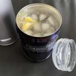 二重構造のため、350ml缶飲料より幅も高さも1cmほど大きくなっています。ぽってりとして見えますが、中央あたりがくびれているので案外持ちやすいデザイン。それに壁の中が真空のため、見た目ほど重くはありません。