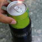 対応しているのは350ml缶だけではありません。400mlや260mlのキャップ付き缶飲料、500mlの缶やペットボトルもすっぽり。肩の部分が壁面に密着していないので、350ml缶よりも保冷力は落ちると思われますが、それでも素の状態より冷たさをキープ。